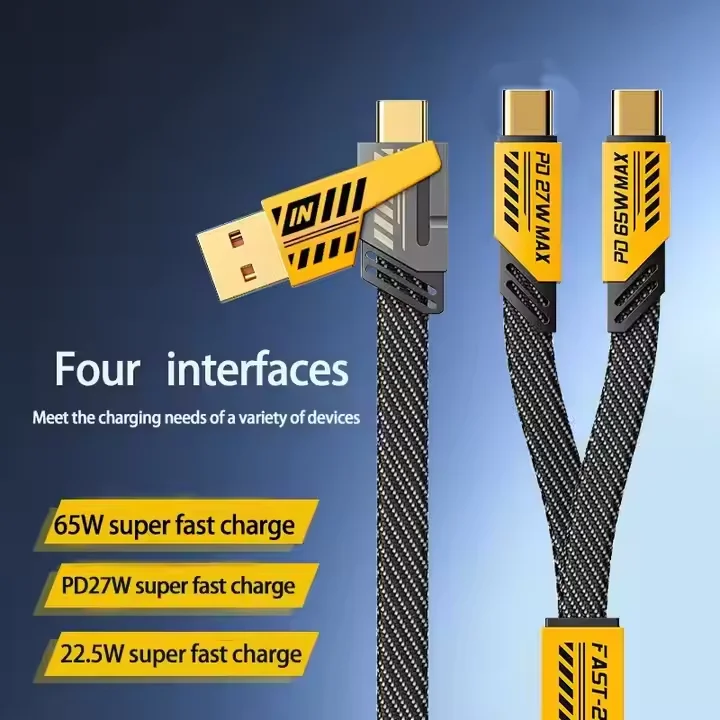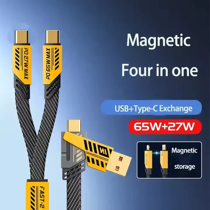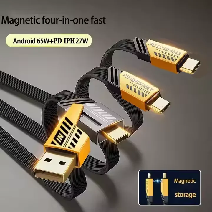 65W+PD27W 1.2m Magnetic Fast Charging Cable 4 in 1 Pure Copper USB Type-C/Micro for IOS Phones Pack of 20