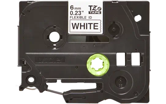 Primarily used for the identification of cables and fibre, this 6mm black on white Brother flexible-ID label tape cassette has been developed with a special adhesive that allows the label to be either wrapped repeatedly around a cable, or can be stuck to itself in the style of a flag.It is also suitable for other applications where there are tightly curved surfaces such as pipes and conduits.Use the various features of your P-touch labelling machine to print durable labels on demand, quickly and efficiently.TZe tape cassettes are quick and easy to install, and come in various label widths, colours and materials – ensuring your P-touch machine can be used for all labelling needs.Brother P-touch laminated labels have been developed to last, even under extreme conditions, and are able to withstand extremes of temperature, sunlight, water, chemicals and abrasion. · · · Black text on white flexible ID tape · · 6mm wide · · 8 metres long · · Special adhesive for cable wrap/flagging applications