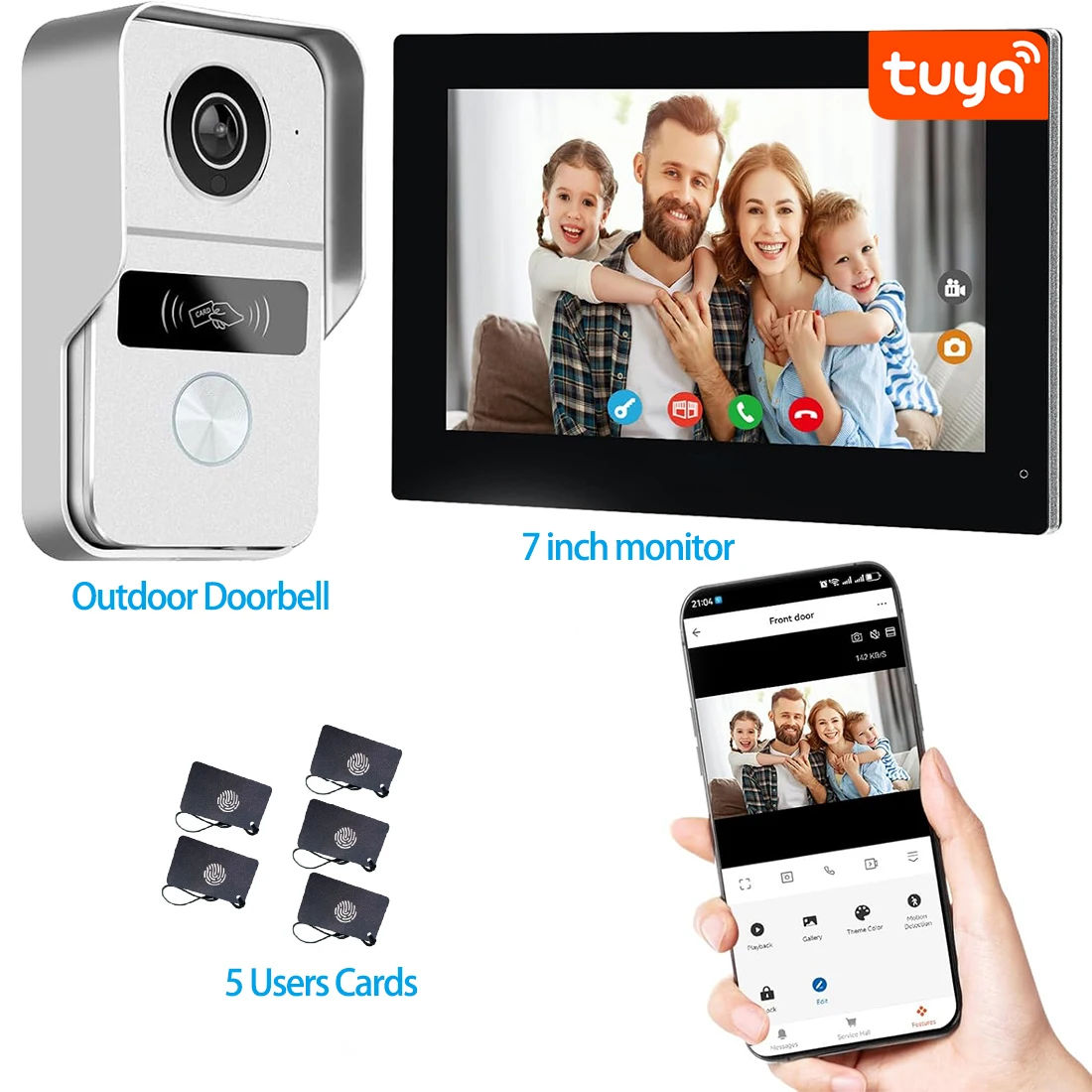 Product Description 7 Inch Tuya Video Doorbell WiFi Outdoor Door Bell Waterproof IP65 Intercom Smart Home Door Phone Camera 2-Wire Digital Video Intercom Kit – See, Talk, & Unlock from Anywhere! Bullet Points: ✅ 7″ or 10.1″ IPS Touchscreen – Crystal Clear Video & Easy Control ✅ 2-Wire Setup – No Polarity, Easy DIY Installation in Minutes! ✅ Smart Human Detection – Auto-Record Videos/Photos When Someone Approaches ✅ Free App Control – Answer Calls & Unlock Doors from Your Phone, Anywhere! ✅ RFID & Smart Badges – Keyless Entry for Your Family ✅ Connect up to 24 Cameras –Expand Your Home Security System ✅ Weatherproof & Durable – IP54 Rated, Works from -30°C to +70°C Why Choose Our Video Intercom Kit? uD83DuDD39 Easy Installation & No Polarity Forget complicated wiring! With just 2 wires and no polarity issues, you can install this system yourself – no electrician needed. Save time and money! uD83DuDD39 See & Speak to Visitors in HD Whether it’s a delivery person, a guest, or a stranger, you’ll see them clearly on a 7″ IPS touchscreen. Day or night, the wide-angle camera and IR LEDs ensure a sharp image. uD83DuDD39 Smart Human Detection & Recording The intercom panel detects people automatically and can record video or take photos – so you always know who came by. Set motion zones to avoid false alerts. uD83DuDD39Control Everything from Your Phone Download the Tuya Smart / Smart Life App and connect your intercom to Wi-Fi. Answer calls from anywhere Unlock the door or gate remotely Share access with up to 20 app users View live footage and playback from your phone uD83DuDD39Keyless Entry with RFID Badges Includes 5 RFID badges for keyless access. Just tap to unlock – perfect for family members or trusted visitors. uD83DuDD39 Expandable & Compatible Add up to 24 ONVIF or RTSP cameras to the same system. Perfect for growing your smart home security network. Specification Parameter Specification Monitor Screen 7-inch IPS Touchscreen Camera Resolution 2 Megapixels (CMOS Color Sensor) Video Quality 1024 x 600 px, H.264 Decoding Connectivity 2.4 GHz Wi-Fi (IEEE 8111 b/g/n) Power Supply 24V, 1A (Shared for 1 panel & 2 monitors) Power Consumption Monitor: 3.5W App Support Tuya Smart / Smart Life (Up to 20 users) Smart Features Human Detection, Motion Zones, Auto Photo/Video Recording Access Control RFID Badges (5 included, supports up to 100), Remote App Unlock Wiring Simple 2-Wire Setup (No Polarity) Weatherproof IP54 Rated (Suitable for Outdoor Use) Operating Temp. -30°C to +70°C