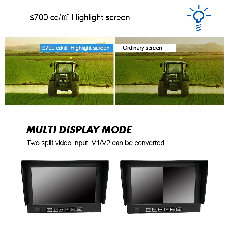 7 Inch Waterproof Vehicle Monitor with Bi-directional Video Display for Forklift Trucks and Construction Vehicles
