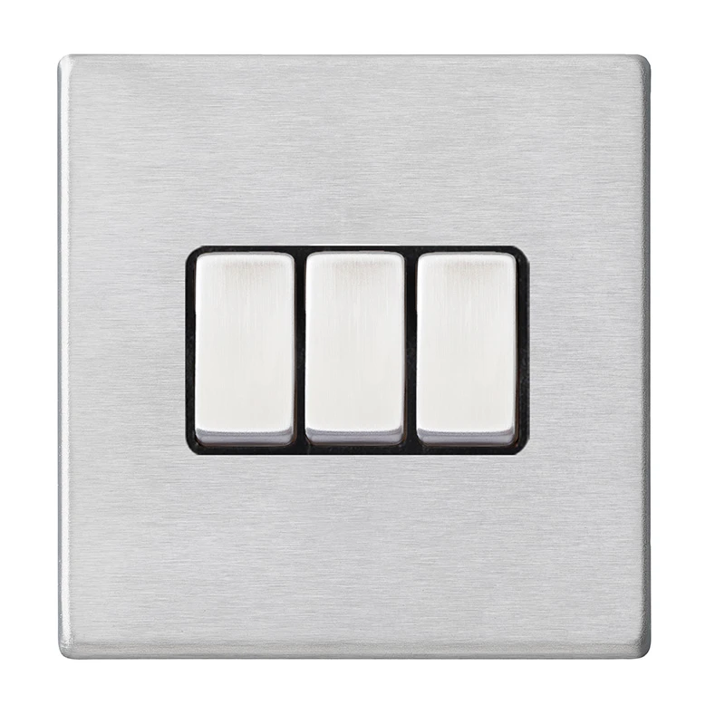 rocker switch 3 Gang · · · Concealed fixing · · Satin Stainless · · Fit & Forget: 25-year guarantee