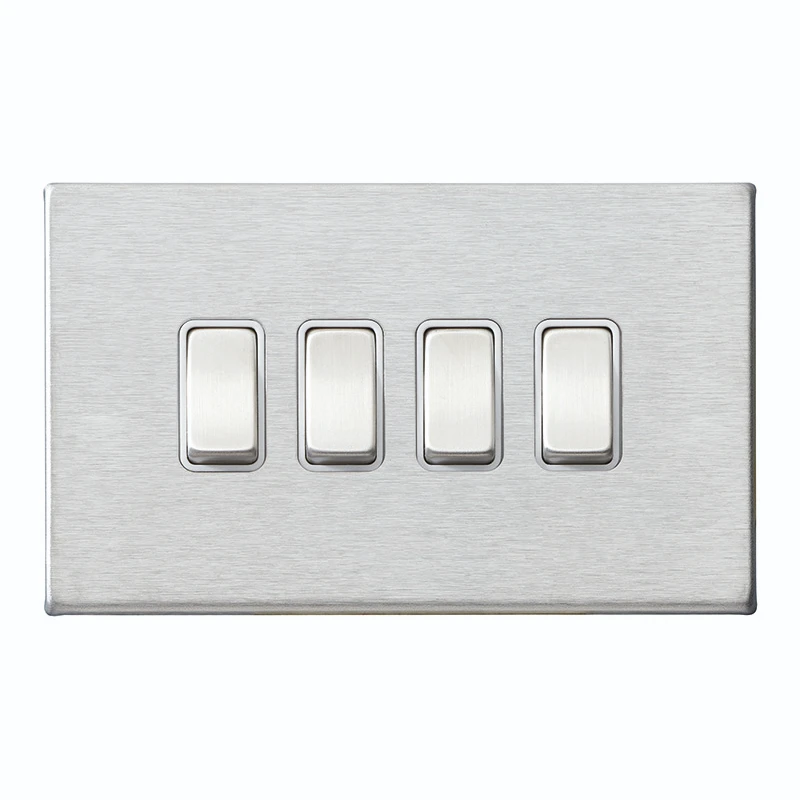 rocker switch 4 Gang · · · Concealed fixing · · Satin Stainless · · Fit & Forget: 25-year guarantee
