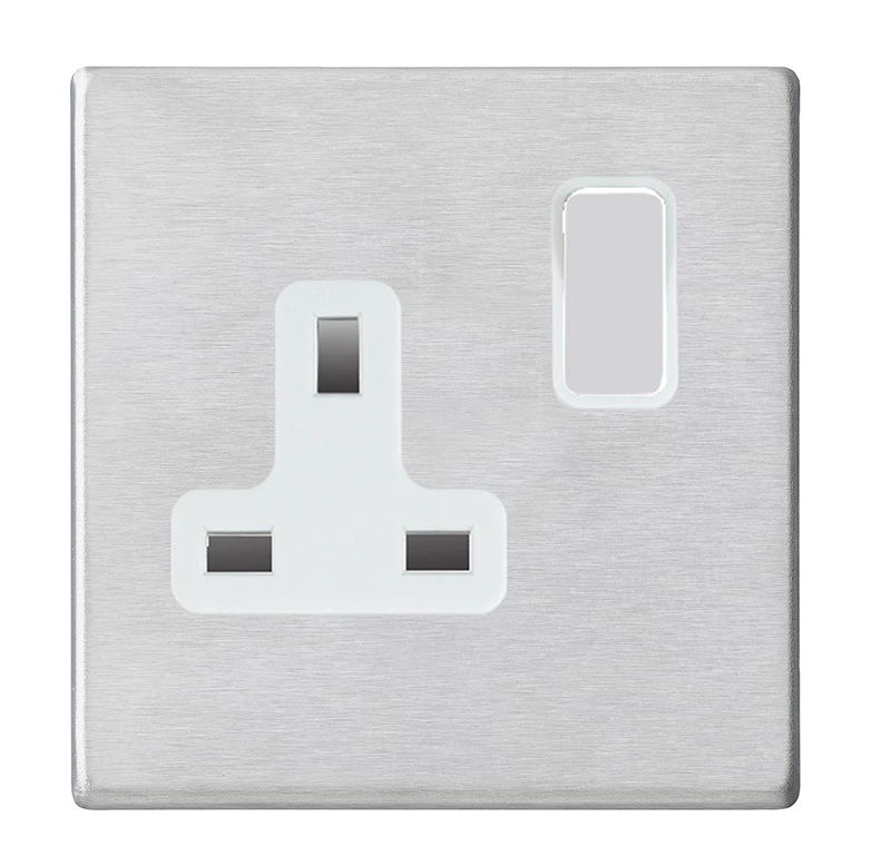 SOCKET switched 1 Gang · · · Concealed fixing · · Satin Stainless · · Fit & Forget: 25-year guarantee
