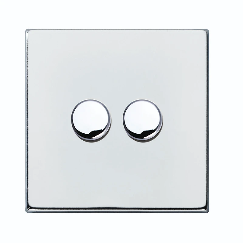 DIMMER switch 2 Gang · · · Concealed fixing · · Bright Chrome · · Fit & Forget: 25-year guarantee
