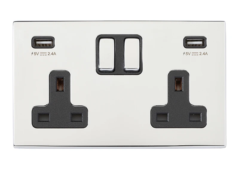 switched socket USB 2 · · · Concealed fixing · · Bright Chrome · · Fit & Forget: 25-year guarantee