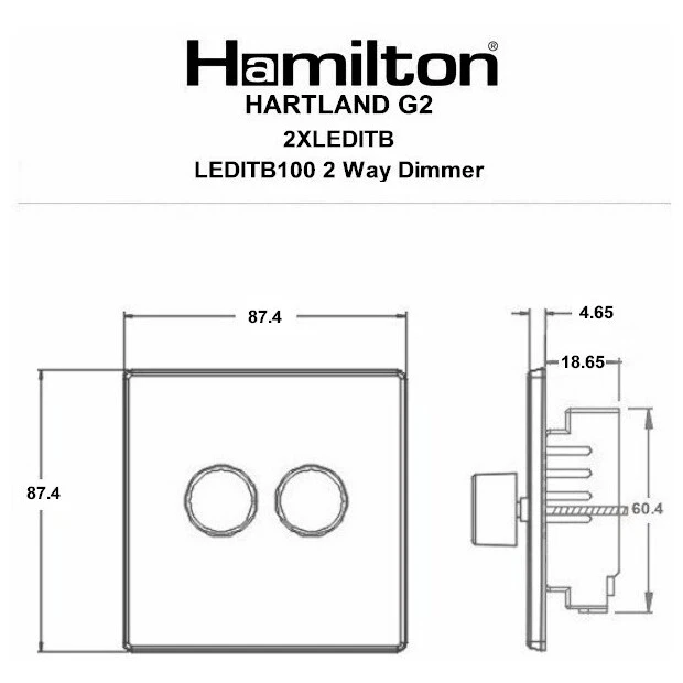 7G292XLEDITB100 Hamilton HARTLAND G2 DIMMER switch 2 Gang 100W