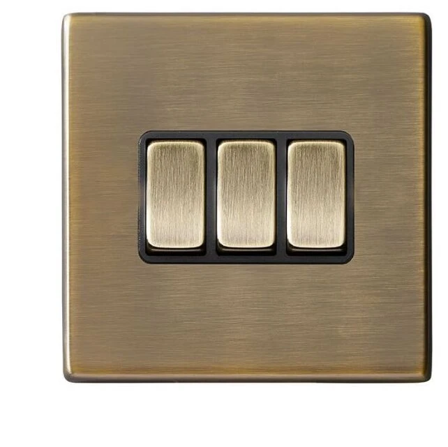 ROCKER switch 3 Gang · · · Concealed fixing · · Antique Brass · · Fit & Forget: 25-year guarantee