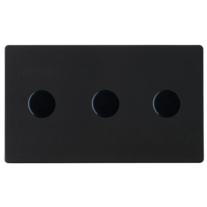 DIMMER switch 3 Gang · · · Concealed fixing · · Matt Black · · Fit & Forget: 25-year guarantee