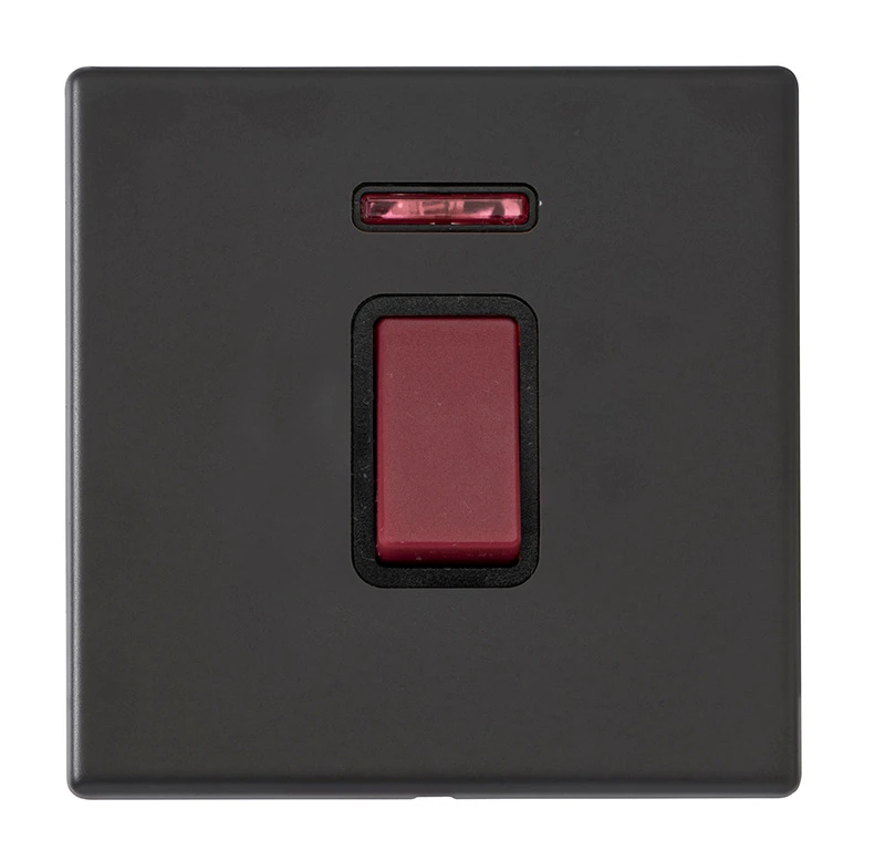 ROCKER switch+NEON 45A · · · Concealed fixing · · Matt Black · · Fit & Forget: 25-year guarantee
