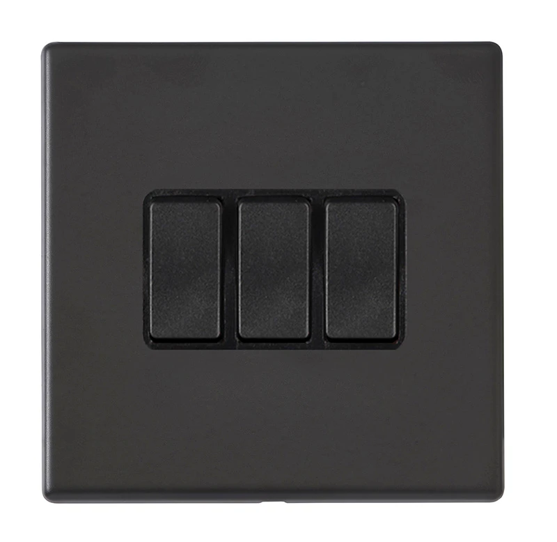 rocker switch 3 Gang · · · Concealed fixing · · Matt Black · · Fit & Forget: 25-year guarantee