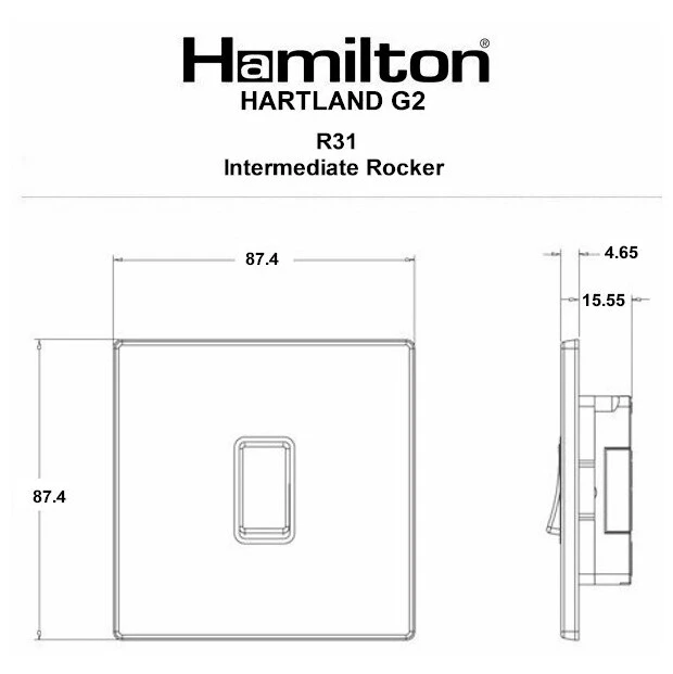 7G2MBR31BL-B Hamilton HARTLAND G2 ROCKER switch 1 Gang 10A