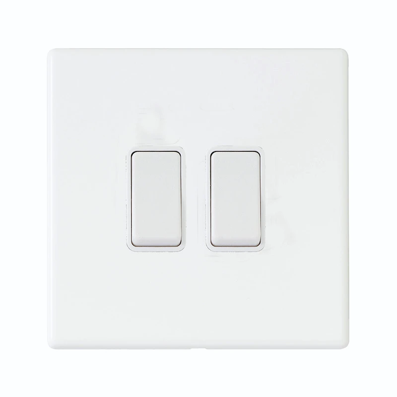 rocker switch 2 Gang · · · Concealed fixing · · Matt White · · Fit & Forget: 25-year guarantee
