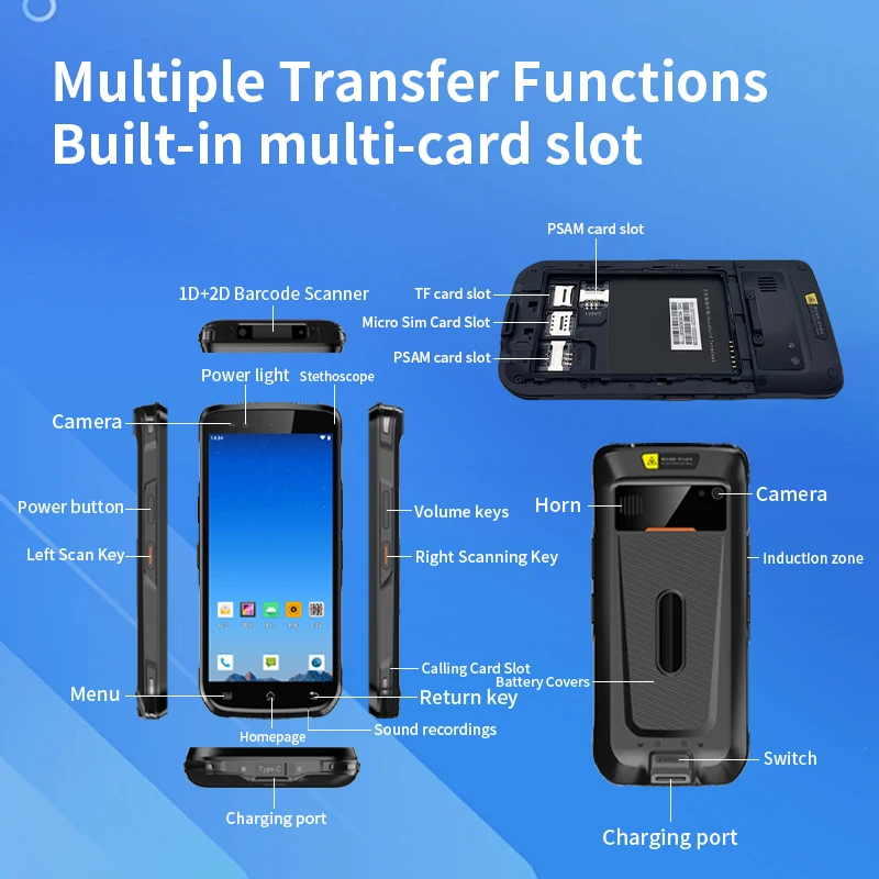 Physical parameters Size 173 (L) * 79 (W) * 17 (T) mm Weight The whole machine is less than 350g (including battery) screen 6.0 inch, resolution 720 * 1440, 400 lumen Touch Industrial Gorilla Five-Point Touch Screen Backlight Led backlight Battery Removable lithium-ion polymer battery, capacity: 4850mAh; 4.35 V normal use time: more than 8 hours, standby time: 300 hours Card slot Micro-SIM card X 1, TF card X 1 I/O Type-C USB X 1 with OTG support Network 4G/3G/2G、Wi-Fi、GPRS Notification method Sound, vibration Audio Microphone, speaker, earpiece keybutton Power button, volume +/-button, left and right scan button Power adapter Charging time 3-4 hours, use standard power adapter and data cable to support optional fast charging, fast charging for 2.5 hours Sensor Gravity sensing, light sensing, distance sensing PSAM Support for 2 PSAM cards Data acquisition Scan engine Two-dimensional code scanning engine, supporting Zebra, Horney and other brands Support one-dimensional barcode type UPC/EAN,Bookland EAN,UCC Coupon Code,ISSN EAN, Code 128,GS1-128,ISBT 128,Code 39,Trioptic Code 39, Code 32, Code 93,Code 11, Interleaved 2 of 5,Discrete 2 of5, Codabar, MSI, Chinese 2 of 5, Korean 3 of 5, Matrix 2 of 5, Inverse 1D, GS1 DataBar, Coposite Codes, etc. Supports 2D Code type PDF417, MicroPDF417, Data Matrix, Data Matrix Inverse, Maxicode, QR Code,MicroQR,QR inverse,Aztec,Aztec Inverse, Postal Codes: US Postnet, US Planet,UK Postal, Australian Postal, Japan Postal, Netherlands KIX Code, USPS 4CB/One/Intelligent Mail, UPS FICS Pstal, etc. Cameras Front camera: 5 megapixels Rear camera: 13MP Support autofocus and flash Development Environment Operating System Android 12.0 SDK Handheld terminal software development kit Development tools Eclipse/Android Studio Performance parameters CPU Octa-core 2.0 GHz Memory 4GB RAM + 64GB ROM (standard) 8GB RAM + 128GB ROM (optional) Supports Micro SD (TF) up to 128 G expansion Wireless communication WWAN 2G:GSM/CDMA 3G:TD-SCDMA/WCDMA/CDMA2000 4G:TD-LTE/FDD-LTE WIFI WIFI frequency: 2.4 GHz & 5 GHz WIFI protocol: 802.11 a/B/G/n/AC protocol GPS Beidou, Glonass, GPS, Galileo Bluetooth Bluetooth 5.1 is supported NFC NFC (optional) Operating band: 13.56 MHz Protocols supported: MifareClassic (MF1) NDEF, NfcV (15693), Ultraligh (MF0), IsoDep (quasi-CPU MF3), IsoDep (CPU) Reading distance: 0-5cm (depending on card type) Safety protection Operating temperature -10 ℃ to 50 ℃ Storage temperature -40 ℃ to 70 ℃ Humidity 5% to 95% (non-condensing) Drop specification Six sides and four corners can withstand a drop of 1.5 meters. Rolling specifications Continuous rolling of 1000 wheels for 0.5 m, and stable operation after rolling of 6 contact surfaces Vibration Random (10 Hz to 30 KHz); 60 minutes per axis, 3 axes Electrostatic protection +/-15 kV air discharge; +/-8kv contact Degree of protection IP67 meets IEC sealing standard Certification CCC/MSDS/IP-67/ISO9001/CE Products Description Why Choose Us Shenzhen Jingrui Hengtong Electronics Co. (JR) company was established in 2013. It is a software manufacturer with 10 years of processing experience.With a strong R&D team, the company focuses on 2D scanning engine, 2D scanner, 2D imaging platform, and 2D mobile portable terminal. The products are widely used in libraries, medicine, public utilities, logistics, retail, warehousing, material management and many other fields.We have 1.Good quality control 2.Very competitive price 3.Effective OEM&ODM service Production Line Exhibition Certifications Product packaging