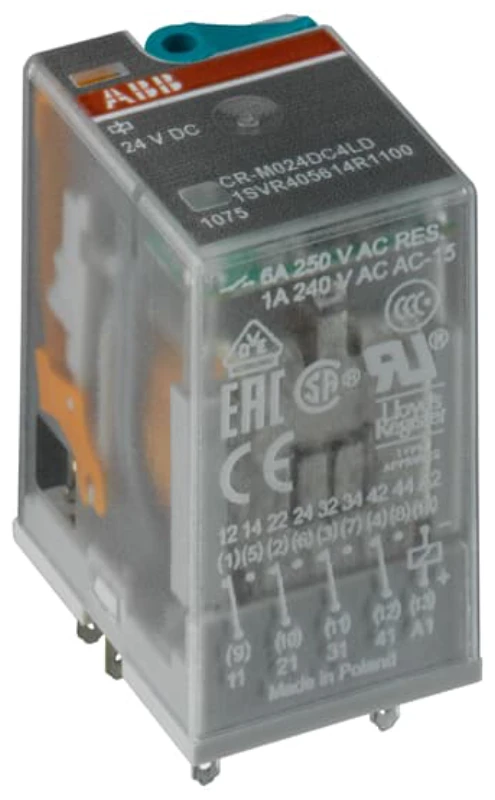 The CR-M012DC2L Pluggable Interface Relay Is From The CR-M (Miniature) Relay Range. This Relay Operates With A 12 V DC Rated Control Supply Voltage And Has A 2 C/O (SPDT) Output With Contacts Rated At 250 V / 12 A. The Relay Has An Integrated Blue Test Button For Manual Actuation And Locking Of The Output Contacts And An Integrated LED. Standard Sockets, Logic Sockets, Pluggable Function Modules, Holder And Marker Are Available As Accessories. · · · 4 different coil voltages · · DC versions: 12 V, 24 V · · AC versions: 24 V, 230 V · · Output contacts · · 4 c/o contacts (6 A) optionally equipped with gold contacts · · Integrated test button for manual actuation and locking of the output contacts (blue = DC, orange = AC) that can be removed if necessary · · Logical or standard sockets · · Cadmium-free contact material · · Width on socket: up to 31 mm · · Pluggable functional modules