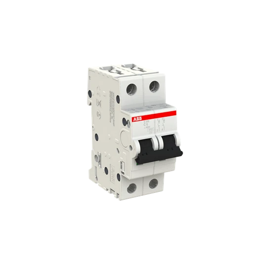 ABB 2CDS252001R0064 2 Pole 6A Type C MCB with Failsafe bi-directional cylinder-lift screw terminal. This System pro M compact S202-C6 MCB is current limiting device. It is comply with IEC/EN 60898-1 and IEC/EN 609 47-2. Bottom-fitting auxiliary contact can be mounted on S200 to save 50% space. It provides moderate switching surges for short durations. It has metal framed trip-free switching mechanism. · · · Breaking Capacity: 6kA · · Colour: Light Grey · · Current Rating: 6A · · Height: 88mm · · Range: System pro M Compact · · Width: 35mm · · Weight: 250g · · Depth: 69mm