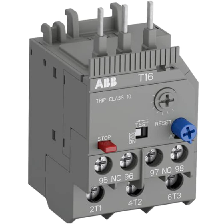 The T16-0.41 thermal overload relay is an economic electromechanical protection device for the main circuit. It offers reliable and fast protection for motors in the event of overload or phase failure. The device has trip class 10. Further features are the temperature compensation, trip contact (NC), signal contact (NO), automatic- or manual reset selectable, trip-free mechanism, STOP function and a trip indication. The overload relays are connected directly to the mini contactors or block contactors. Single mounting kits are available as accessory. · · · Thermal Overload Relay · · Manual or Auto Reset · · Trip Class 10