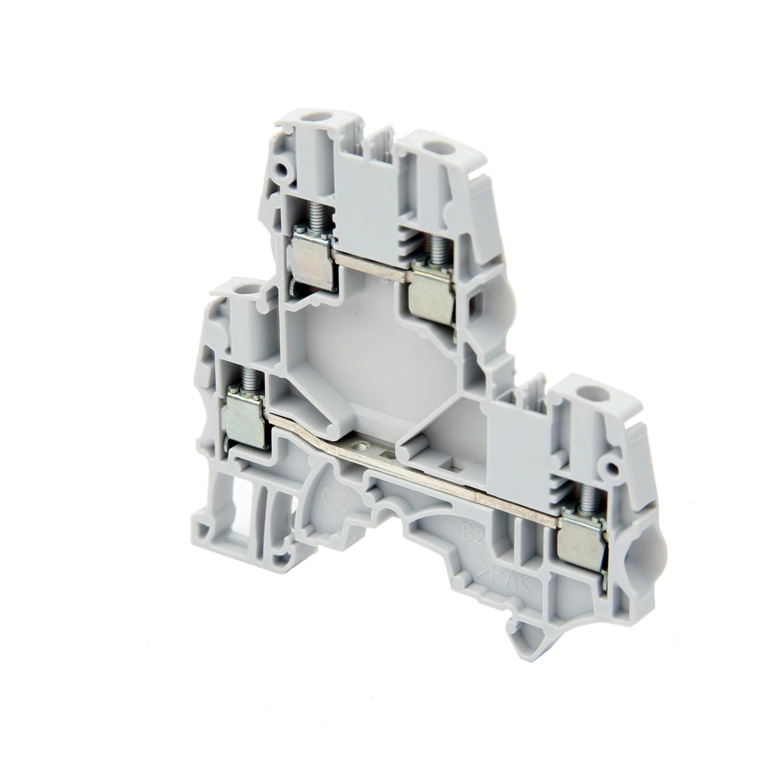 ABB 1SNK505210R0000 grey double deck screw clamp terminal block with feed through function. The ZS4-D2 terminal block is made up of polyamide insulator. It saves space with double deck terminal blocks, 2 independent circuits connected in just 5.2mm spacing and customizing the ZS4-D2 by soldering electronic components in the existing linking bars punching. It features 4mm² rated cross-section and A3 to B3 gauge. It provides IP20 main terminals degree of protection according to IEC 60529, IEC 60947-1, EN 60529. · · · Colour: Grey · · Conductor Size: 12 AWG Stranded · · Height: 70.4mm · · Material: Polyamide · · Width: 5.2mm · · Weight: 15g · · Depth: 65.5mm