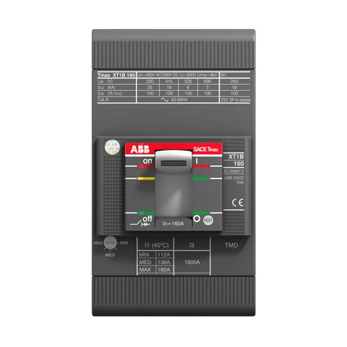ABB XT1C Moulded Case Circuit Breaker with XT1C160 front terminals and thermomagnetic release. It is associated with power distribution. It has a fixed dimension of copper depending on the quantity. · · · Front terminals and thermomagnetic release · · Associated with power distribution · · Has a fixed dimension of copper depending on the quantity · · Icu (415 V) = 25 kA · · ln = 100A