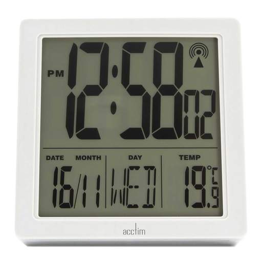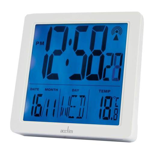 Acctim Varsity Radio Controlled Multifunction Display Alarm Clock White