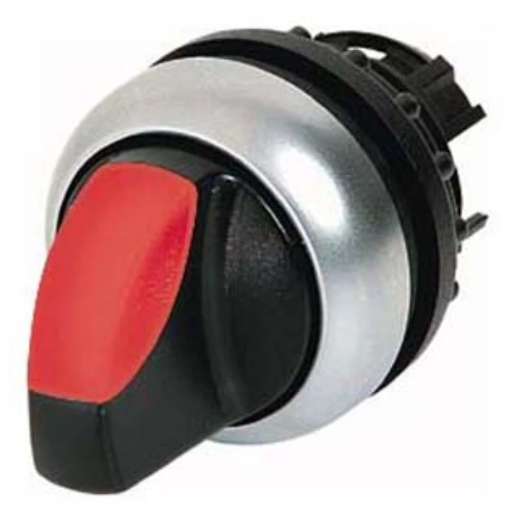 Technical Specifications Technical Specifications Front element for selector switch Material front ring Plastic Colour front ring Titanium Degree of protection (NEMA) 4X, 13 Colour control element Black Construction type lens Round Degree of protection (IP), front side IP66 Colour indicator light cap Red Type of control element Toggle Height opening 0 mm Width opening 0 mm Number of switch positions 2 Hole diameter 22.5 mm With front ring Yes Spring-return No Suitable for illumination Yes Switching function latching Yes · Technical Data Sheet – Click to Download