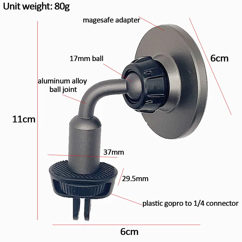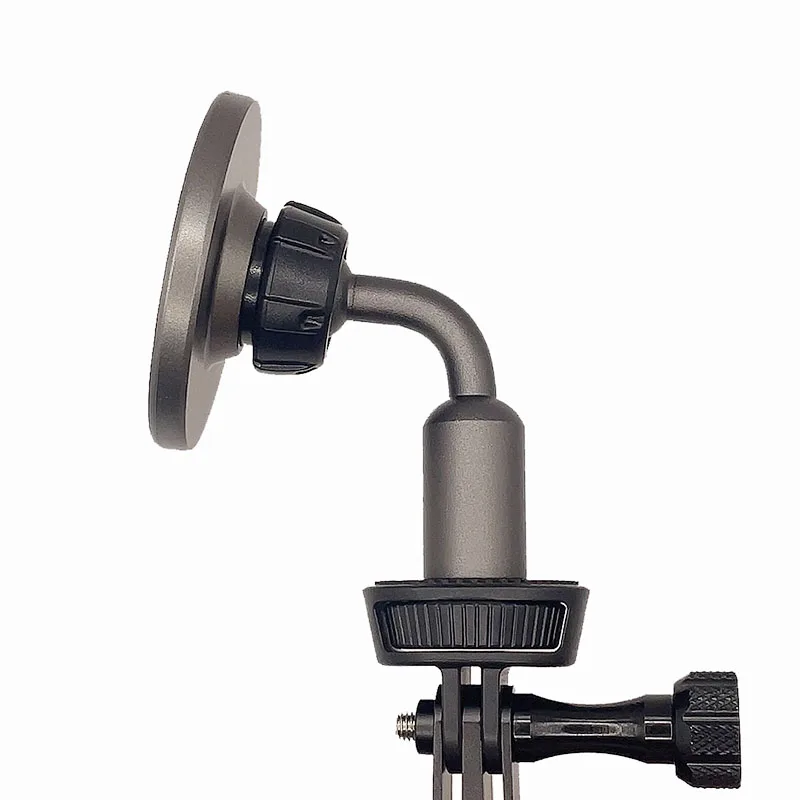 Go Pro to Magnetic Phone Mount for Stick Monopod Tripod Feature 360 Rotating and Very convenient to adjust the direction, Strong 8*N52 Arc Magnets Interface 1/4inch screw thread and 17mm ball connector and go pro converter Fixing mode Mag-safe Magnetic suction directly Unique feature Screw plate for adjusting the phone in right direction Compatible with For i Phone 12 13 14 15 16 Pro Max or other phones with ring metal plate case Material Aluminum alloy+Silicone+ABS+Magnetic Manget Disc Diameter 60mm Application to Monopod Stick, Tripod,Car Holder,Light Stand,Camera Mount etc. 360 Rotating Magnetic Tripod Mount Go Pro Stick Holder Attachment for i Phone 12 13 14 *Go Pro or 1/4 to Rotating Magnetic Adapter *Fix to stick tripod head for 360 rotating and adjust right direction via screw plate *Strong aluminum alloy L style rotating ball magnet phone mount *Widely application to Tripod Monopod Car Holder Fill Light Live Streaming Stand etc. Details Images *Pacakge: magnet puck+go pro adapter+ball joint Front side Back Side Strong Magnets Suction Strength up to 7kg Product Usage Install to Go Pro Mounts Connect with your any go pro mounts for truck car bike living stand etc. Application and feature Removable your Go Pro Camera or Phone Clip and then install this magnetic go pro adapter view more >> Frequently bought together 2024 New Design 360 Magnetic Ball Joint Phone Holder Replacement for Tripod Right Light.