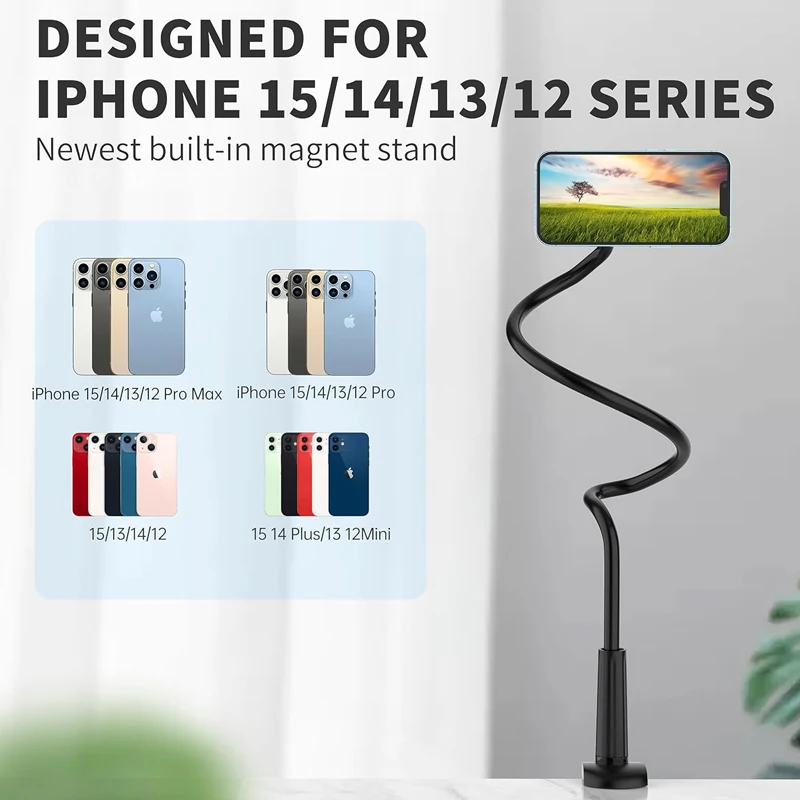 Adjustable Tabletop Stand Clamp Magnetic Gooseneck Phone Holder Mount 14 13 12 Magsafe Case for iPhone 15