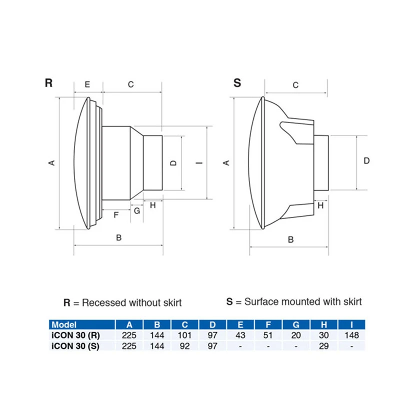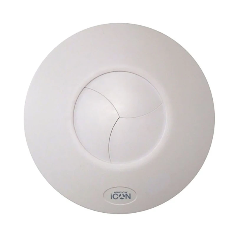 The iCON 30 72591601 is designed to provide ventilation levels that comply with the latest building regulations. The iCON 30 is efficient, stylish and a unique ventilation solution for the home. The shutter design makes switching on and off almost silent and helps reduce external noise ingress. The slim profile and iris shutter of the iCON make it a fan which will blend discreetly into any setting. · · · Wall and ceiling mounting · · Unique iris shutter prevents backdraughts · · Operates silently · · Interchangeable control modules are available · · Control via remote switch when without module · · Circular design · · Perfect for longer duct runs · · Up to 32l/s flow rate · · IPX4 rated · · Noise level: 30.3 dBA