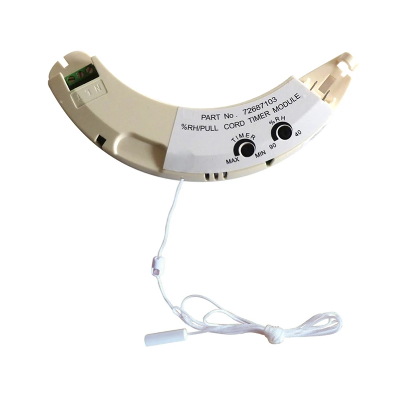 Icon Fan HTM mains humidistat Module with pullcord · · · Manual ON/OFF control via pull cord or remote switch · · Adjustable timer can be set between 1-30mins for iCON run on · · Adjustable humidity sensor (between 40-90% relative humidity) · · Adjustable timer overrun with 1 to 30 minutes · · Modules Can Be Changed Without Having To Change The Fan · · 240Volts