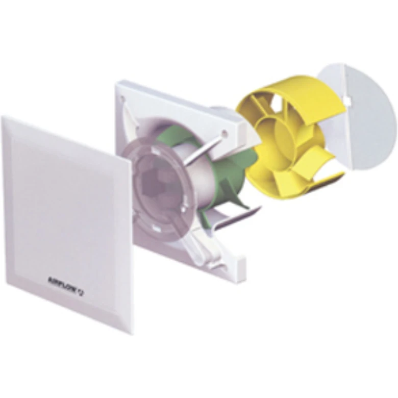 This QuietAir Humidity/Timer Fan carries the Quiet Mark Approval and is part of an extended range of elegant, discreet axial fans that are extremely quiet with various control options that activate the fan only when needed – the choices are: remote switching, timer, humidity with timer and motion sensor with timer. · This Humidity/Timer model has two ways of activating, it is activated by a rise in the level of humidity and it can be connected to a switch, it can be connected to the same switch as the light circuit or it can have its own switch. There is also the option to use both of the QuietAir speeds, a separate three way position switch should be used to achieve this, see our product code 9041315 Model 3POSSW. · When installing this fan you need to select which of the two speeds you want it to operate at if not using the three way switch above. This fan has various settings; these are adjustable by way of the dip switches located under the cover. The adjustable settings are: delayed timer on/off, the delayed timer function, you select the amount of run on time after switching the fan off, adjust the level of humidity that activates the fan and you can also turn off the humidity function. It comes factory set and you only need to access the dip switches if you want to change the factory settings. More detail is available in the wiring instructions included in the box. · · · Extract Performance: Two Speed Axial Extractor Fan Low Speed 21litres a Second High Speed 25litres a Second · · Fan Meets Building Regulations Installed Performance On Both Speeds. Noise Level 25db(A) on Low Speed. · · IP Rating: IP45 This Means It Can Be Used In Zone 1 of a Ensuite/Bathroom as Long as Current Wiring Regulations are Followed · · Three Year Warranty. Very Low Energy Consumption 5W on low speed. Long Life Ball Bearing Motors · · Location: This Fan Can Be Postioned In the Ceiling or The Wall, Ideal Location Furthest From Where The Replacement Air Enters The Room · · Speed 1 75metres cube hour/21 ltrs Speed 2 90 metres cube hour 25ltrs a second;Sound Pressure db(A)@3m 25/30;Energy consumption 5/9 watts;duct diameter 100mm;Voltage230v/1ph/50-60Hz;IP45;Max ambient temp 40C;Dimensions (HXWXD) 147x147x37