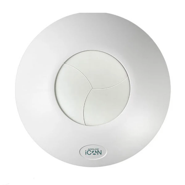 Airflow iCON 30S Series Low Energy Mixed Flow Fan with brushless DC motor offers significantly reduced energy consumption compared with standard AC motors. Fitted with ball bearing motors for extra long life. Model is supplied with a remote mounting 100 / 240 V AC to 12 V DC transformer. Stylish, slim and unobtrusive in walls or ceilings. · · · Flow rate up to 132 m³/h · · Stylish, slim and unobtrusive in walls or ceilings · · Recessed or surface mounting · · Unique iris shutter, prevents backdraughts, operates silently · · Interchangeable control modules match fan to installation requirements · · Stylish, easy to fit, slim profile · · Wall/ceiling, surface/recessed mounting · · Interchangeable control modules match fan to installation · · Choice of Silver, Sandstone, Chrome & Anthracite covers · · IPX4 Protection. 3 year warranty