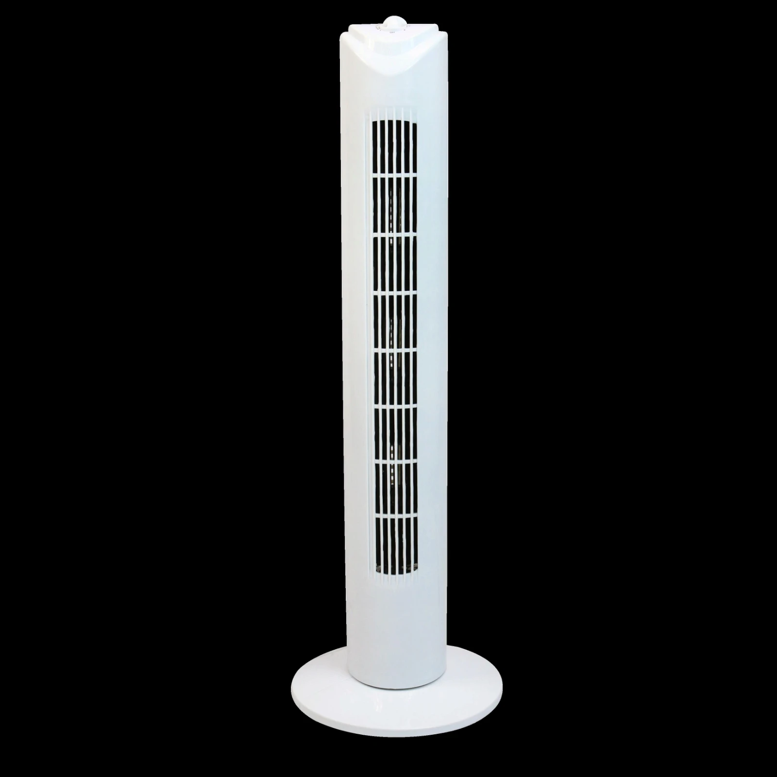 An oscillating tower fan with the option of 3 speeds · · · 50W, 3 Speed, 260x810MM · · Oscillation Function · · 1360 RPM · · 41 Decibels · · White Colour Tower Fan · · 3.5 CBM · · IP20 · · Class II