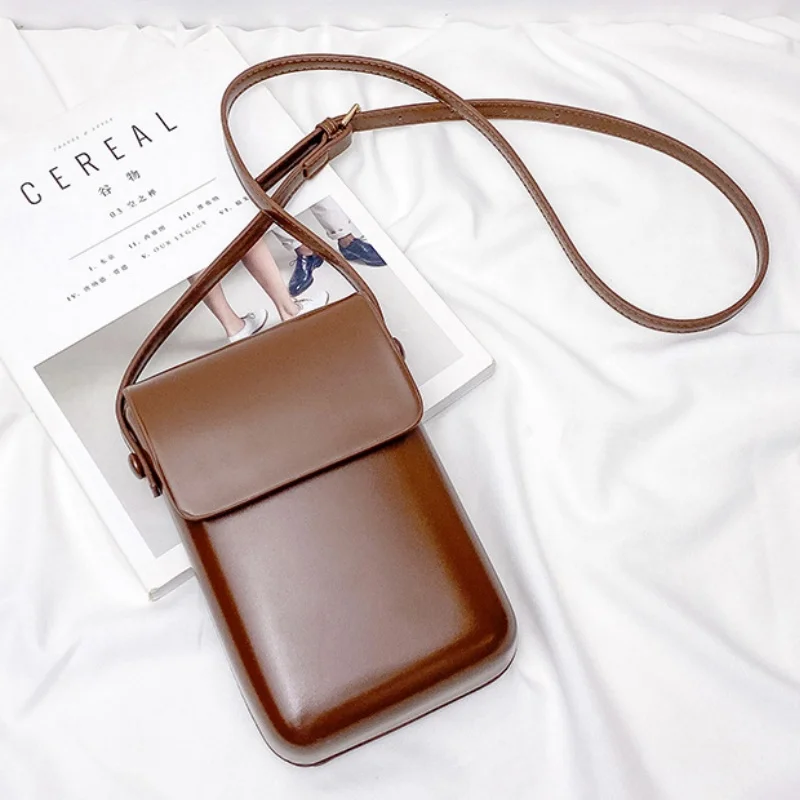 All Match Retro Mini Messenger Bag Simple Flap Phone Cover Small Hanging Neck Bag Men Women Exquisite PU Leather Shoulder Bag Pack of 2