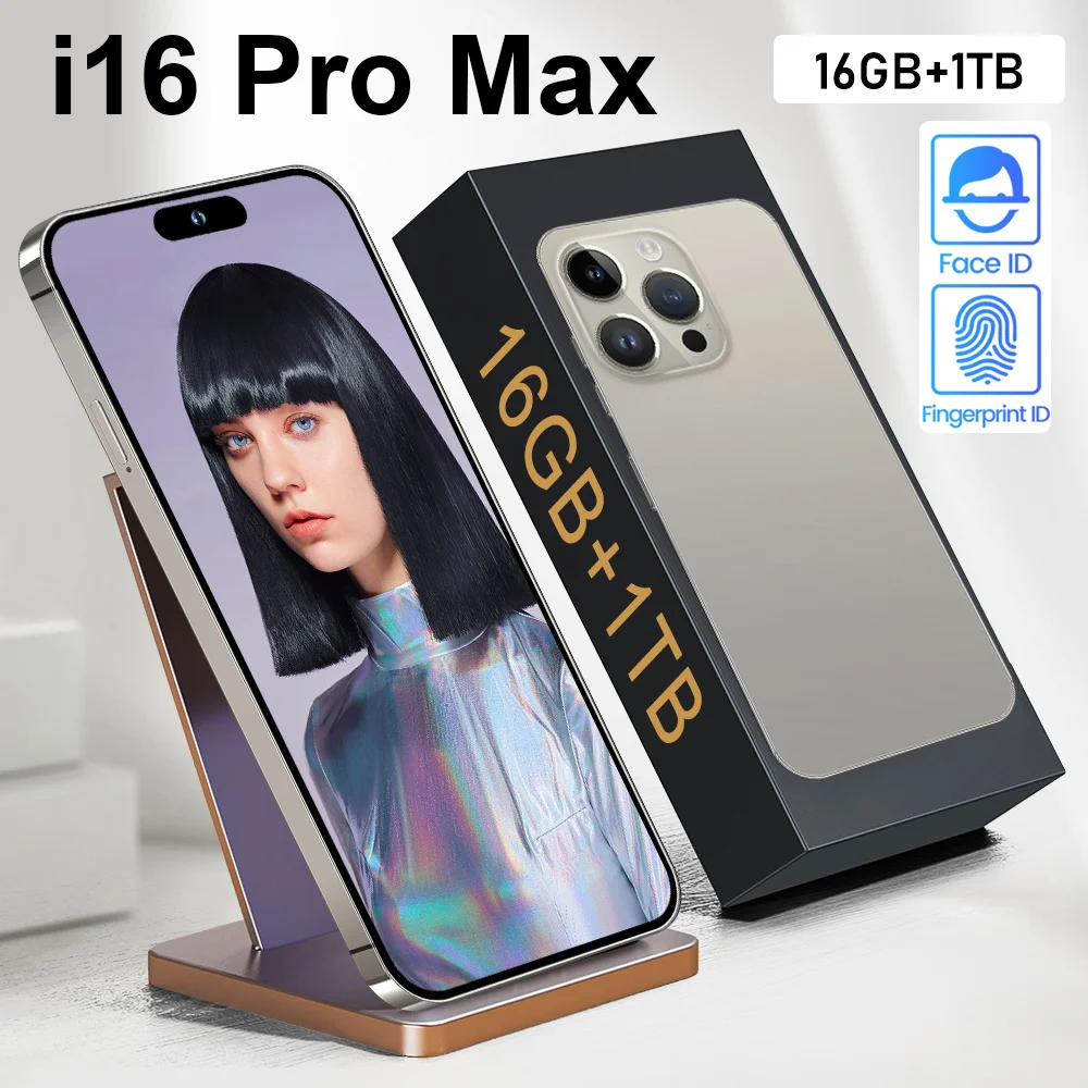 Android 14 I16 Pro Max Mobile Phone Deca Core CPU 16GB RAM 7800mAh Battery 108MP Rear Camera in English