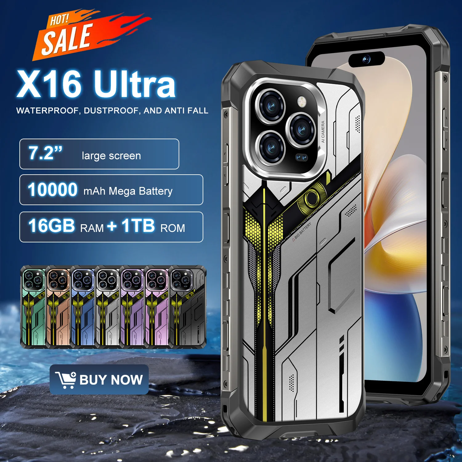 Android Smart Rugged Mobile Phone with 32MP+64MP 10000mAh Fingerprint/Face Unlock NFC
