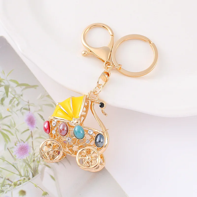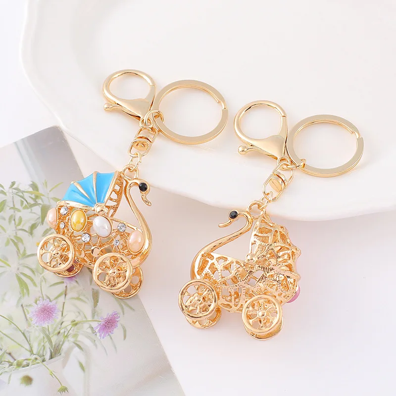 Animal Swan Rhinestone Metal Carabiner Keychain Small Pendant Flying Bird for Car Backpack Gift Wholesale
