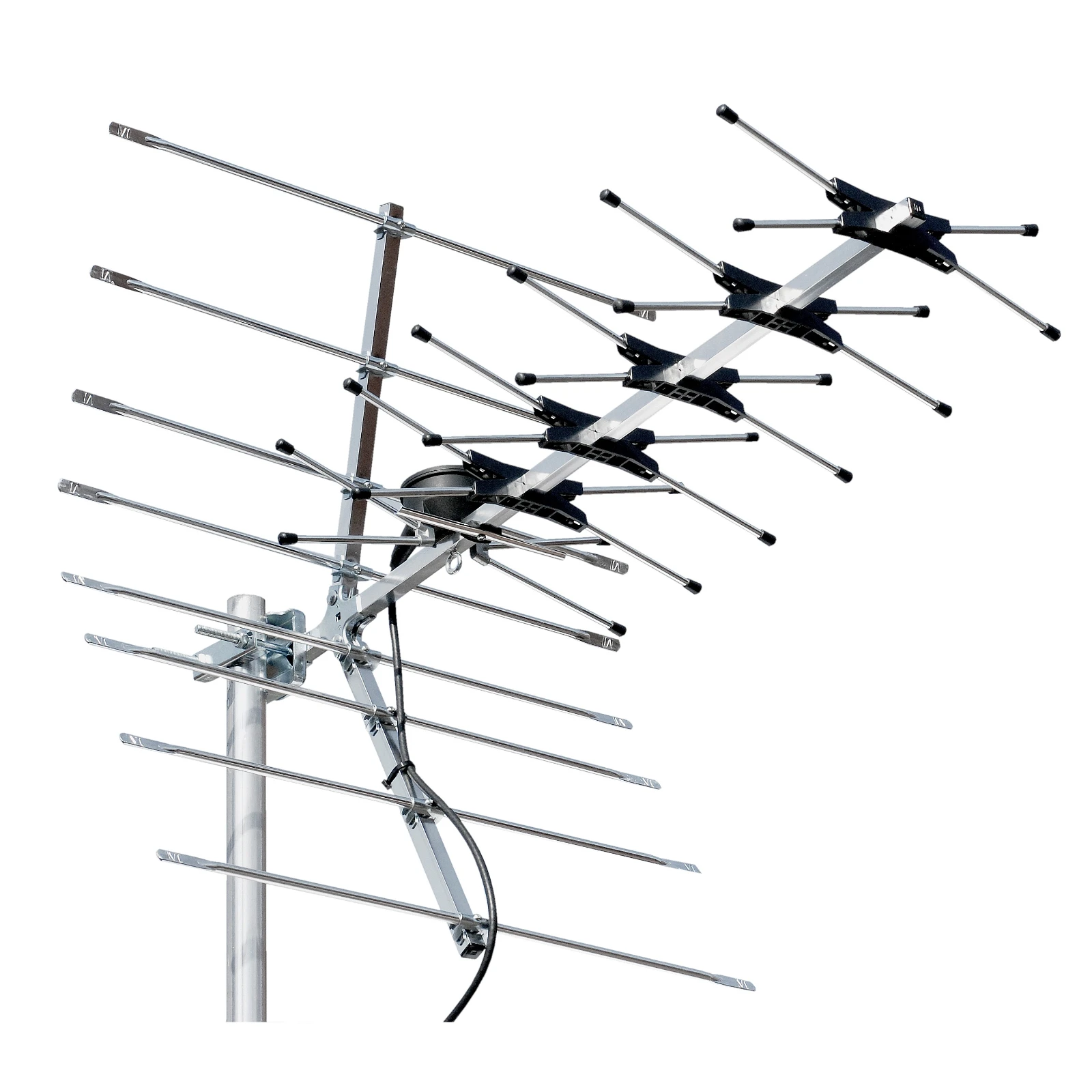 The XG series of aerials offer a unique quad X configuration, which brings in vastly more signal than equivalent aerials with ordinary elements. The six-element reflector beats ghosting by providing an extra high front to back ratio. · · · High gain UHF antenna group T CH21-60 · · Frequency Range: 470-790 MHz · · Forward Gain: 12.5dBi · · Front/Back Ratio: 24dB · · Acceptance Angle deg ± : 23° · · Windage N (at 130km/h): 64N · · Length: 764mm · · Improved reflector gives improved directivity · · Suitable for Freeview