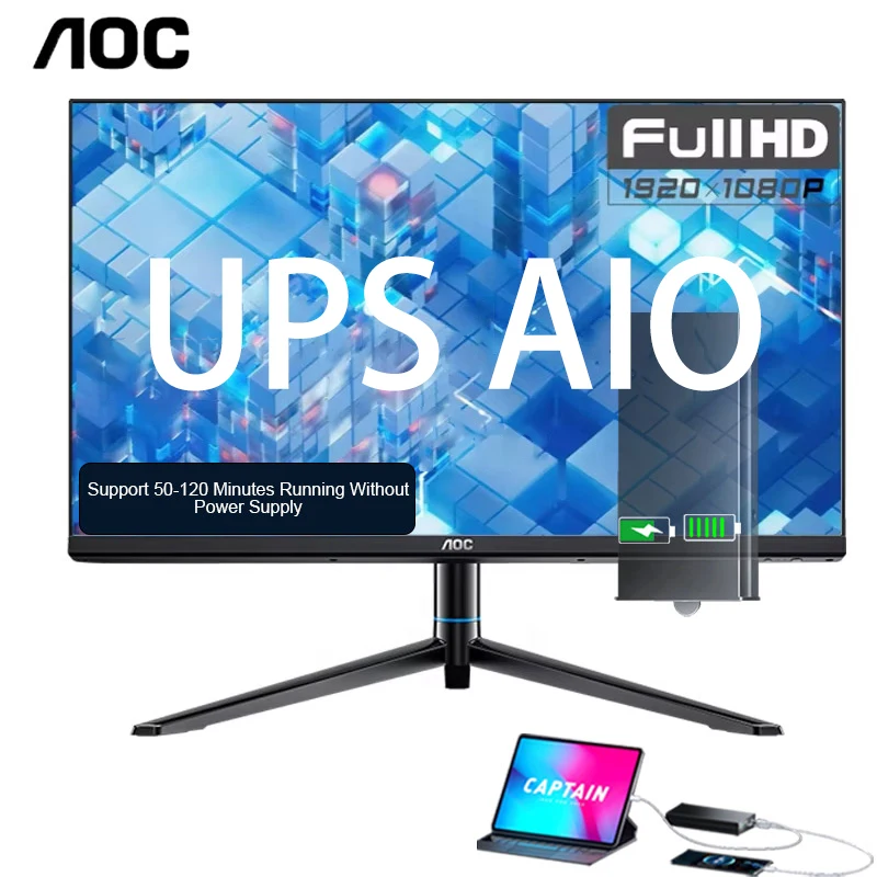 AOC 24inch Ultra Thin All-in-One Desktop Computer I3 12100 8GB RAM 512GB SSD OEM AIO Monoblock All in One PC with UPS Battery