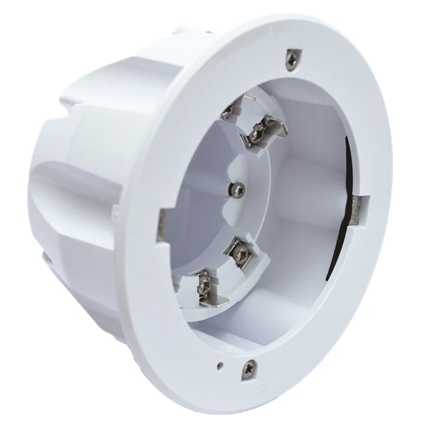 Apollo Soteria Dimension Mounting Box is moulded from white flame-retardant polycarbonate. Positions for either side or top cable entry are marked on the outside of the mounting box to ensure correct cable positioning. An arrow has been placed on the rim to assist in correct orientation of the detector. Placing the mounting box in the correct orientation in the installation aperture, it is secured into position by screwing down the self-aligning fixing tabs. The Soteria dimension mounting box is designed to be used with Soteria dimension optical detectors. · · · Polycarbonate housing · · White colour · · LPCB approval · · 10 year warranty