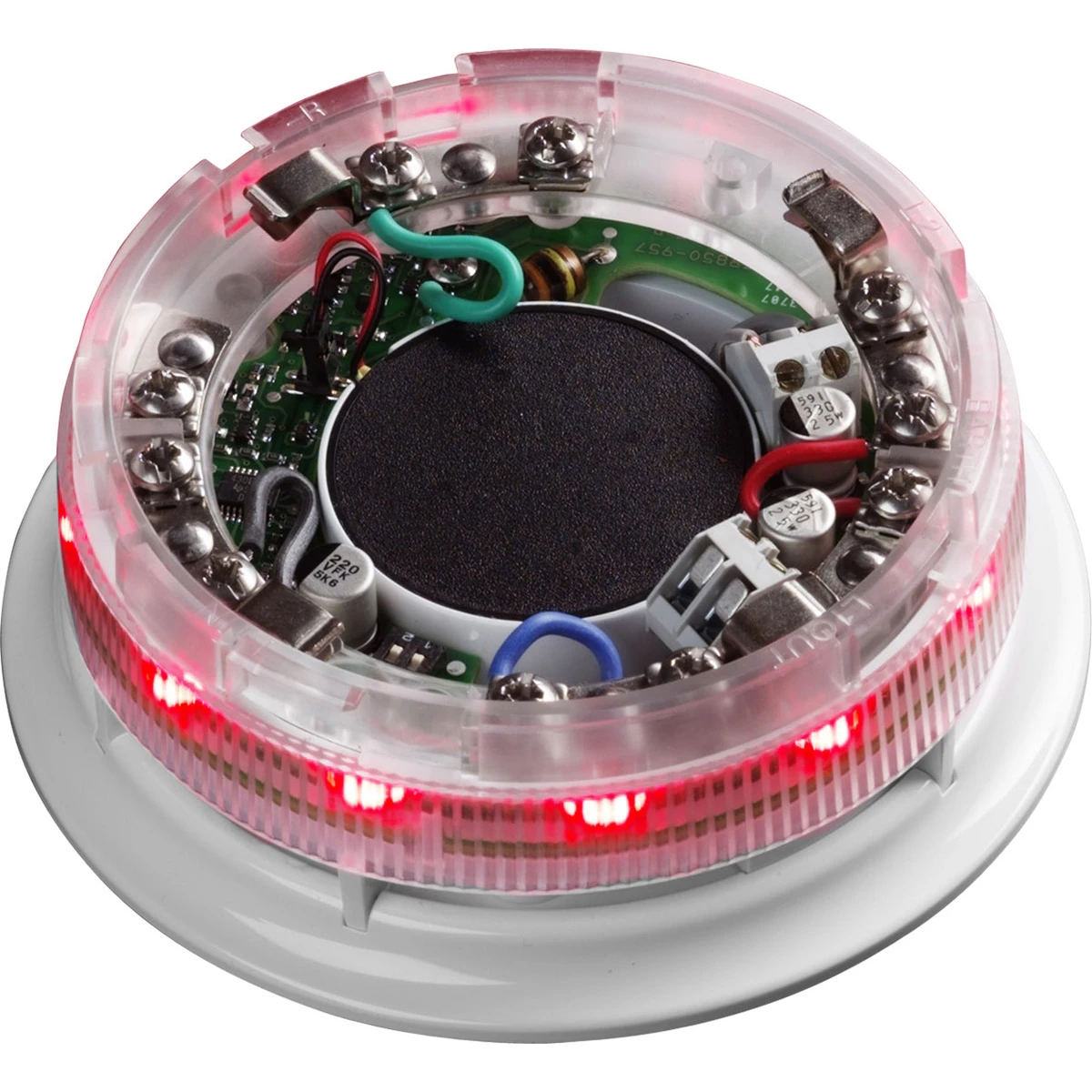 Apollo 45681-509APO AlarmSense Sounder Visual Indicator Beacon Base. The AlarmSense Sounder Visual Indicator Base is designed to be used with AlarmSense systems only. It is supplied with a low or high volume setting and red or white caps are available for stand-alone installation · · · High and low volume ranges compliant with BS 5839 · · Sounder range between 70dB(A) and 87dB(A) · · Detects the removal of a detector head and reports · · a fault · · Continues to work during unauthorised removal · · of detectors · · Quick and simple installation · · Can only be used with AlarmSense systems