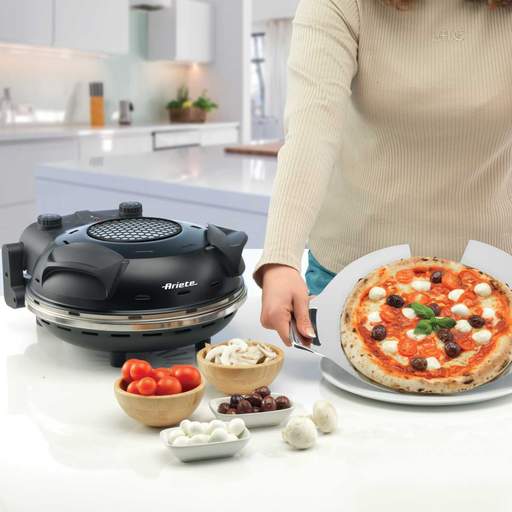 Fast cooking fresh pizza in 4 minutes | Fast cooking frozen pizza in 2 minutes | Viewing window for checking cooking status | The temperature of 400°C guarantees cooking speed & super crunchiness of the pizzas | Transparent non-stick treatment that makes cleaning the stone better | Adjustable temperature & timer | With “Pizzeria” Ariete you can also cook bread, wraps, brioches, panzerotti & much more | 32cm diameter cooking area