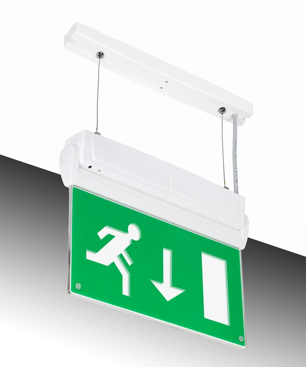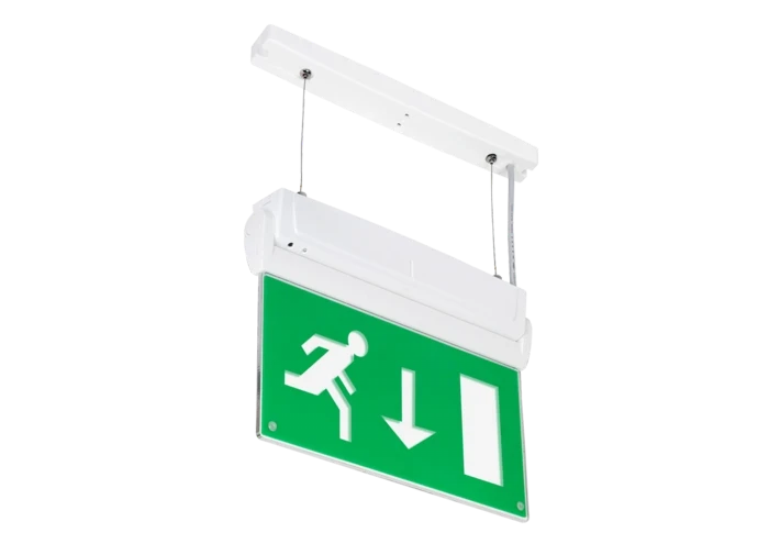 The Arlington is a versatile IP20 rated, LED emergency exit sign. This emergency luminaire has an injection moulded Polycarbonate body, a 5mm thick clear acrylic blade with a changeable exit Euro “arrow down running man” legend and comes with a Lithium Iron Phosphate (LiFePO4) battery. ISO legends are also available. NVC’s Arlington can be wired for either maintained or non-maintained operation and the automatic self-test version is compliant with BS5266. The main body rotates 90 degrees to allow direct fixing to walls and comes with optional recessed, wire suspension and side wall mounting attachments. The Arlington is an ideal emergency luminaire for lighting corridors, exits, changes of direction, and escape routes. · · · Wire Suspension kit · · White Polycarbonate Construction · · 500mm Adjustment Via Clutch Mechanisms · · Prewired Connections · · Easy To Install · · IP20 · · 7 Year Warranty