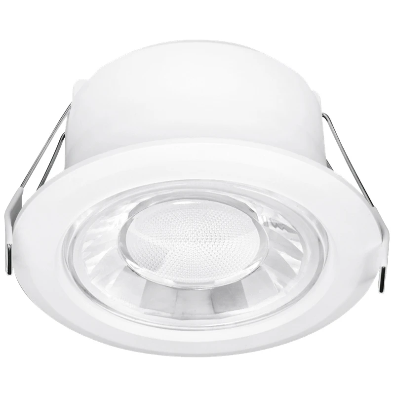Aurora Spryte Fixed Integrated LED Downlight is dimmable, ideal energy efficient non-fire rated solution for new build or retrofit halogen installations. Fitted with the edge-to-edge, multifaceted, 60° wide beam EnFiniti lens, these downlights allow for high light output and low glare while still providing a sparkling halogen like optical appearance in a compact sized fitting. · · · Energy efficient LED downlight for new build or halogen and reflector lamp retrofit applications · · Edge-to-edge multifaceted polycarbonate lens creates low glare and halogen like appearance · · Compact integrated driver for easy installation and low ceiling voids · · IP44 protection rating · · 3 year warranty