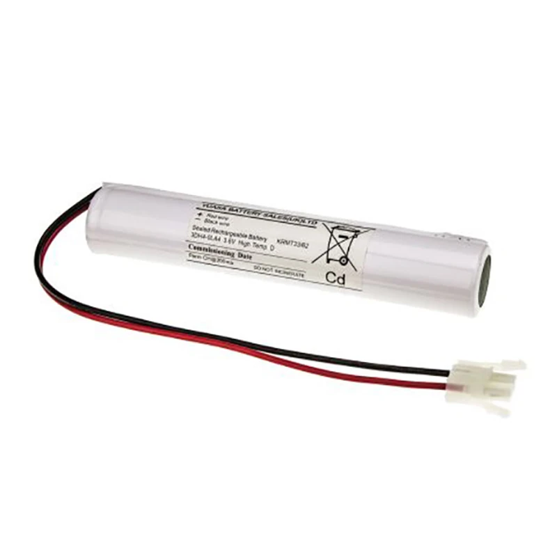 Nickel Cadmium battery perfect to be used for emergency lighting and any other portable power applications. · · · 3 x D Cell Ni-Cd batteries with red and black flying leads approx 300mm and AMP plug (+ Pin1, – Pin 2) · · Rechargeable · · Operational in high temperatures (Range: -20°C to 70°C) · · 4 Year rated lifespan at 40°C · · Stick configuration · · Capacity: 4Ah · · Constant current charging should be limited to 0.05CA maximum (Cyclic: 0.1CA max) · · Constant current charge limit: 200mA (Cyclic: 400mA) · · Dimensions: 180x33mm (LxDia) · · Weight: 400g