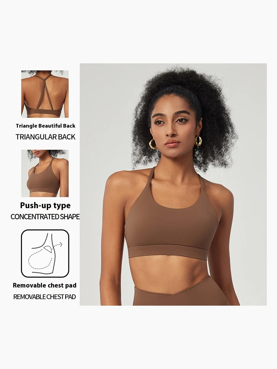 Beautiful Breathable Sports Bras for Fitness Gear Naked Yoga with Steel Ring Thin Belt & Chest Pad