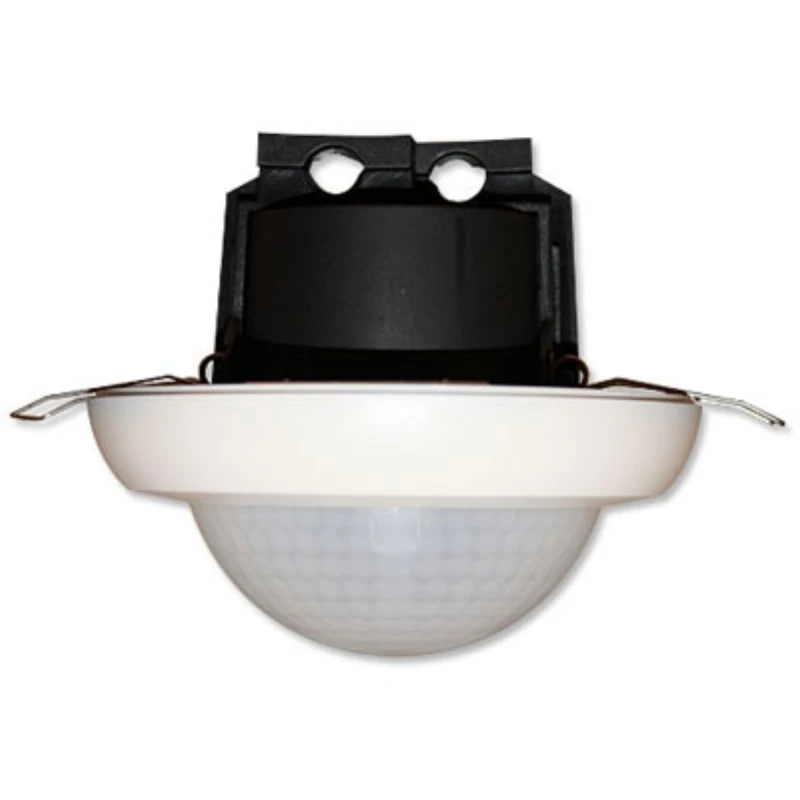 Technical Specifications  Technical Specifications Motion detector Material Plastic Colour White Mounting method Flush mounted Surface protection Untreated Degree of protection (IP rating) IP20 Model Presence detector Surface finish Not applicable Voltage type AC RAL-number (similar) 9010 Max. reach frontally 4 m Max. reach sideways 12 m Max. starting current 10 A Control current 2.2 mA Diameter reach on floor 24 m Max. duty cycle 30 min Max. switching power 2300 W Switch-off delay 1800 s Optimum mounting height 2.5 m Number of switching zones 1 Min. switch-on time 15 s Frequency 50 – 60 Hz Detection angle horizontal 0 – 360 ° Response value luminosity 10 – 2000 lx Halogen free Yes Creep-under protection Yes Suitable for wireless transmission No Response value sensitivity adjustable No Staircase monitoring Yes Transparent No Bridging switch Yes With remote control Yes Constant light control No Animal zone No Networkable No HVAC-control No Forced switch off Yes Auxiliary input Yes Teach-function for response value luminosity Yes Alarm function Yes With signal unit No Dim function with dimmer basic element No Remote operation Yes Response value luminosity adjustable Yes Suitable for C-load Yes