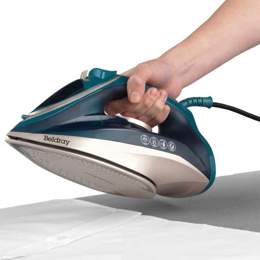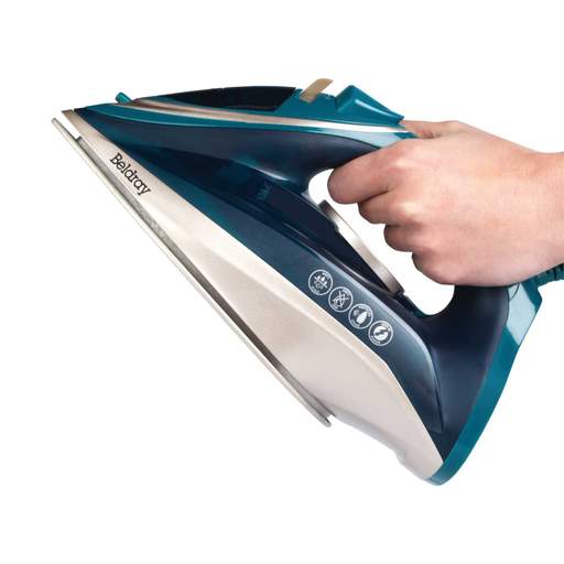 Boasting a high-powered performance, this Beldray Duo Glide steam iron is complete with an easy-to-use temperature control function. | Helping to tackle the toughest of creases, the white gold ceramic-coated iron features a continuous steam function and 2200-watt power. | Perfect for busy households, this Beldray iron is fitted with a dual precision tip soleplate, making it easy to get in-between buttons. | Complete with an anti-drip feature, this stylish steam iron is built with a 1.9m cord and includes a high-performing water spray addition. | 150 years and still growing- Beldray are planting a tree for every Duo Glide steam iron purchased, providing a more sustainable future.