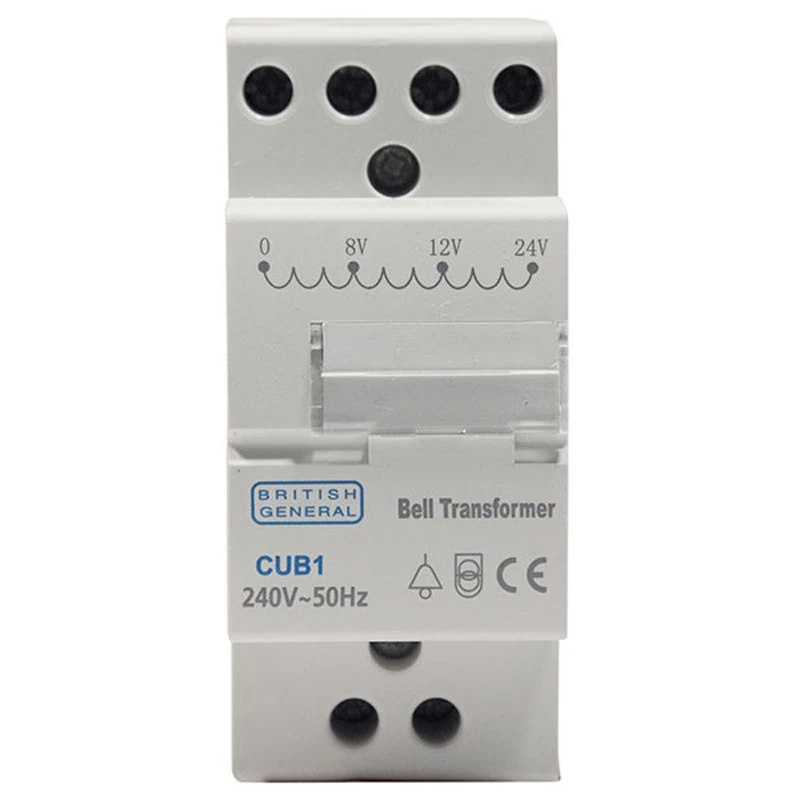 BG Bell Transformer is a DIN rail mounted. It is part of the BG range of control devices and is suitable for use within any BG metal or insulated consumer unit and any enclosure. It is DIN rail mountable and changes 240VAC power into either 8, 12 or 24VDC, providing constant power to the mains powered door bell. It can be used as part of a high integrity circuit so that it is not effected by an RCD tripping. · · · Ideal for controlling large lighting loads, heating or ventilation systems · · For use with metal or insulated consumer units and enclosures · · Continuous operation service period · · White gloss finish · · Manufactured to EN/IEC 60947, 61095 standards
