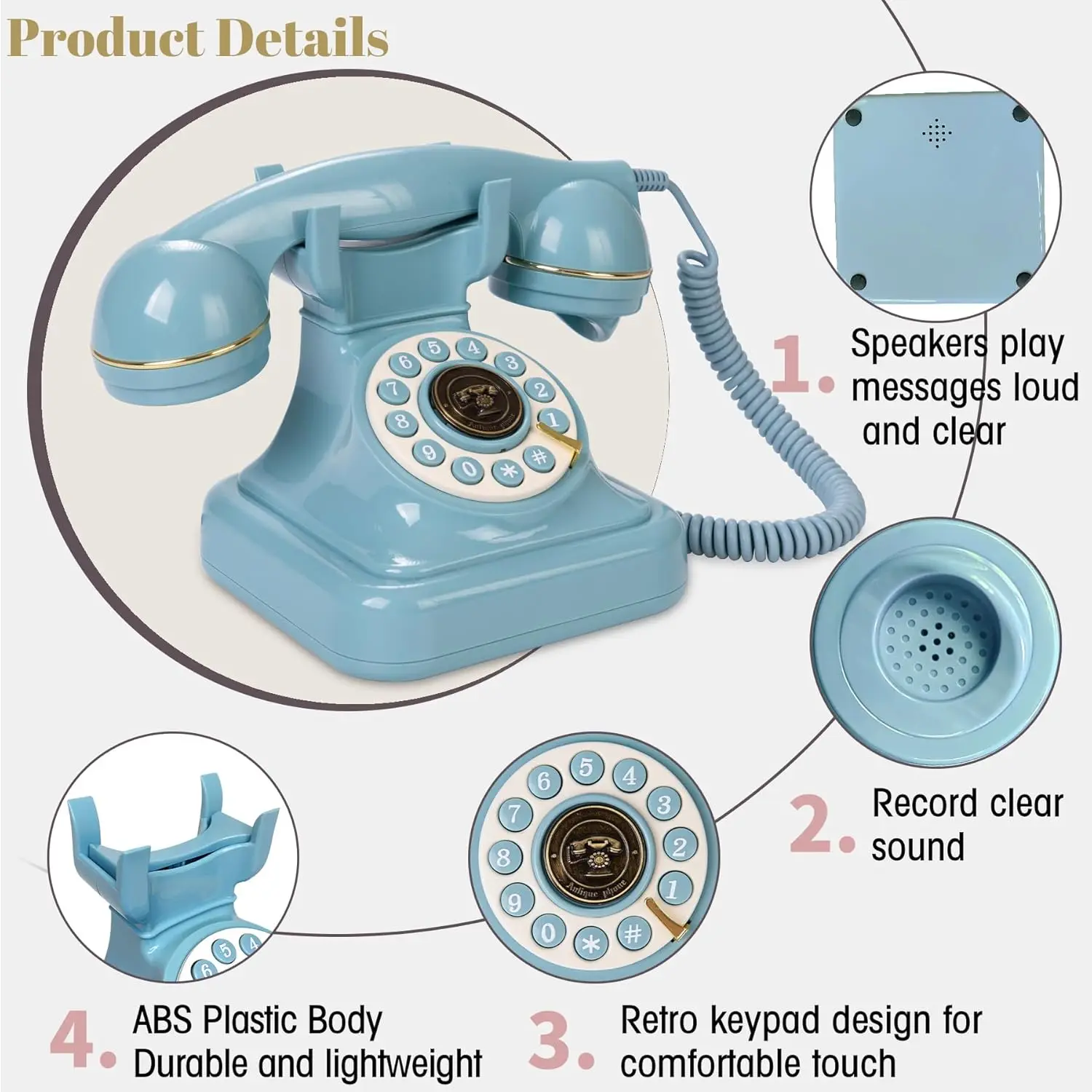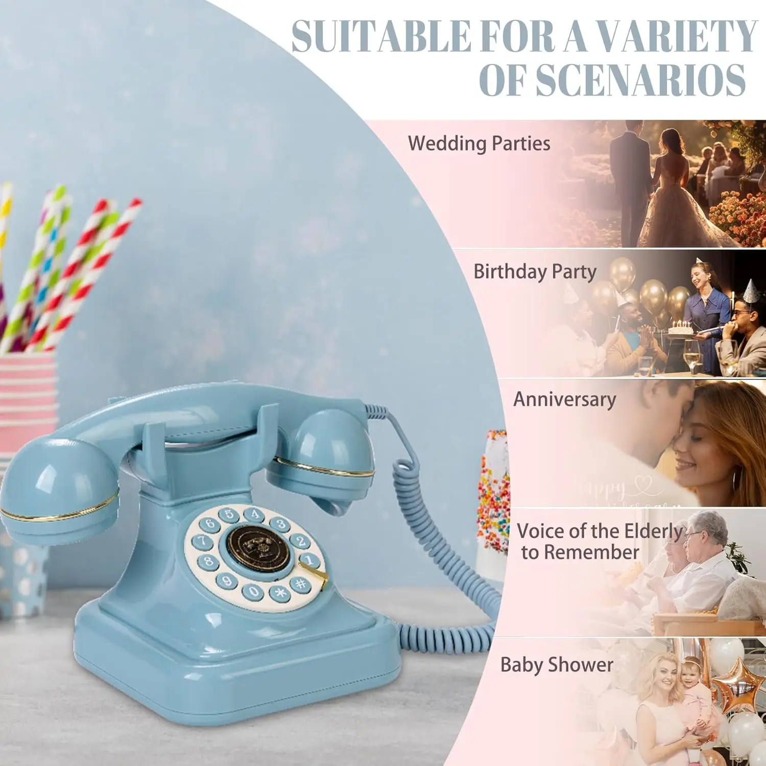 Audio Guestbook Phone Weight 1.5 KGs SD Card 32GB TF Card Function Audio Guestbook Color Black White Pink Blue MOQ 1 pcs Style Antique Luxury Customized Support Detailed Images Best Selling Recommended by seller Antique Retro Audio Guestbook Phone Weddings Birthdays Corded Telephones Message Voice Mail Confession Book Replacement Feiyaqi.