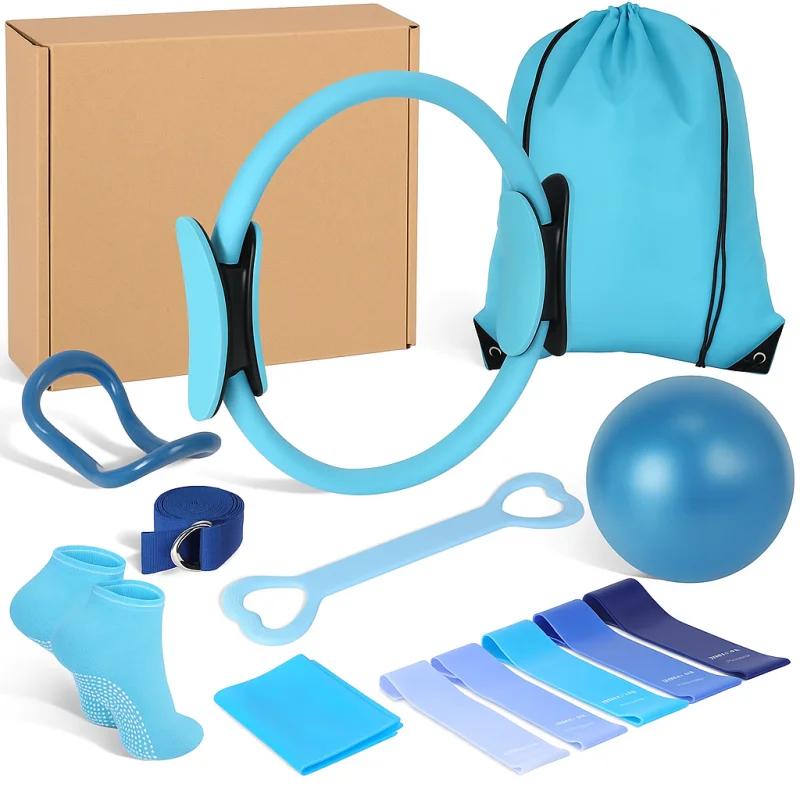 Detailed Image Product Description Feature All-in-One Pilates Kit This 13-in-1 set includes a Pilates ring, 9.8” ball, 5 resistance bands, stretch strap, yoga loop, arm toner, socks, and carry bag—everything you need for full-body toning and home workouts, whether you’re a beginner or getting back in shape. Support Strength, Flexibility & Recovery Perfect for abs, thighs, glutes, arms, and core. Use it for daily workouts, physical therapy, or postpartum recovery. Made from durable, skin-friendly materials designed for comfort, stretch, and results you can feel. Compact, Easy & Gift-Ready Lightweight and portable, this Pilates kit fits in your bag for workouts anywhere. Easy to use with included guidance. A thoughtful gift for friends, daughters, or anyone starting their wellness journey. Product Name 13pcs pilates set Description: Material:TPE,PVC,Fiberglass,Plastic Weight 1.13kgs Product Pilates Ball, Pilates Ring, Pilates Socks, Resistance Bands, figure 8 resistance band LOGO customized PACKAGE 10sets/ctn Carton dimension 50*44*44cm Carton (kg) 15kgs Our Advantages No MOQ ,500kinds product for you choose ! Quality guarantee 24-hour service Packing & Delivery Sample Time: 3-5days Delivery Time: 30days after you confirm this order MOQ 100-500PCS Shipping By sea,air,or train payment L/C,T/T, Paypal, Western Union