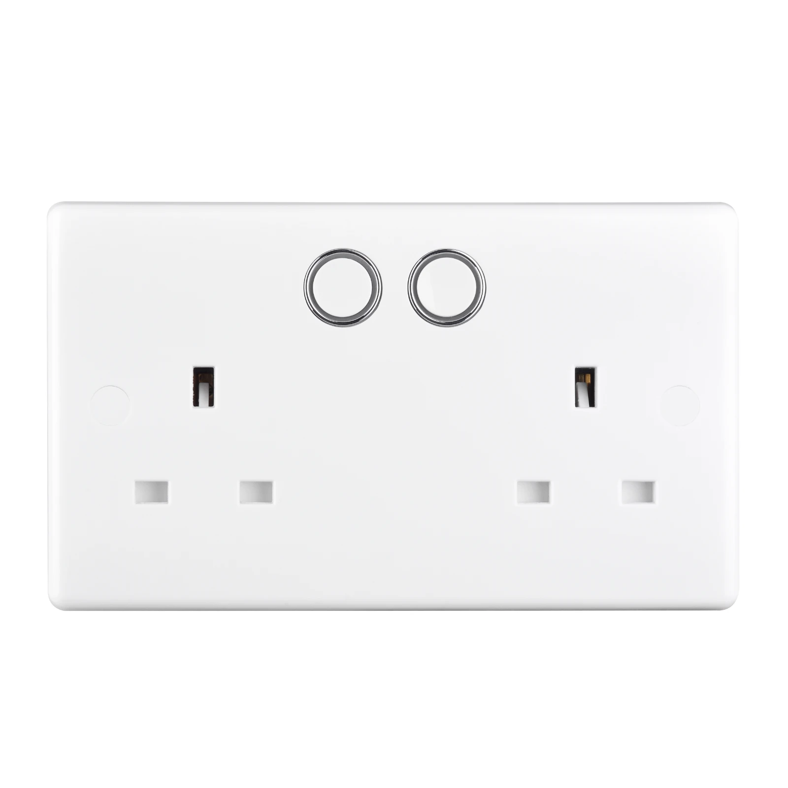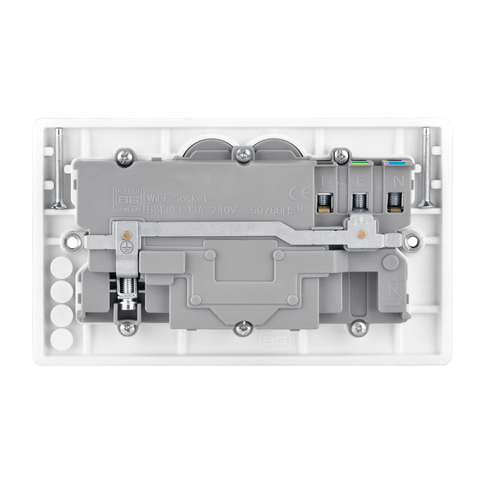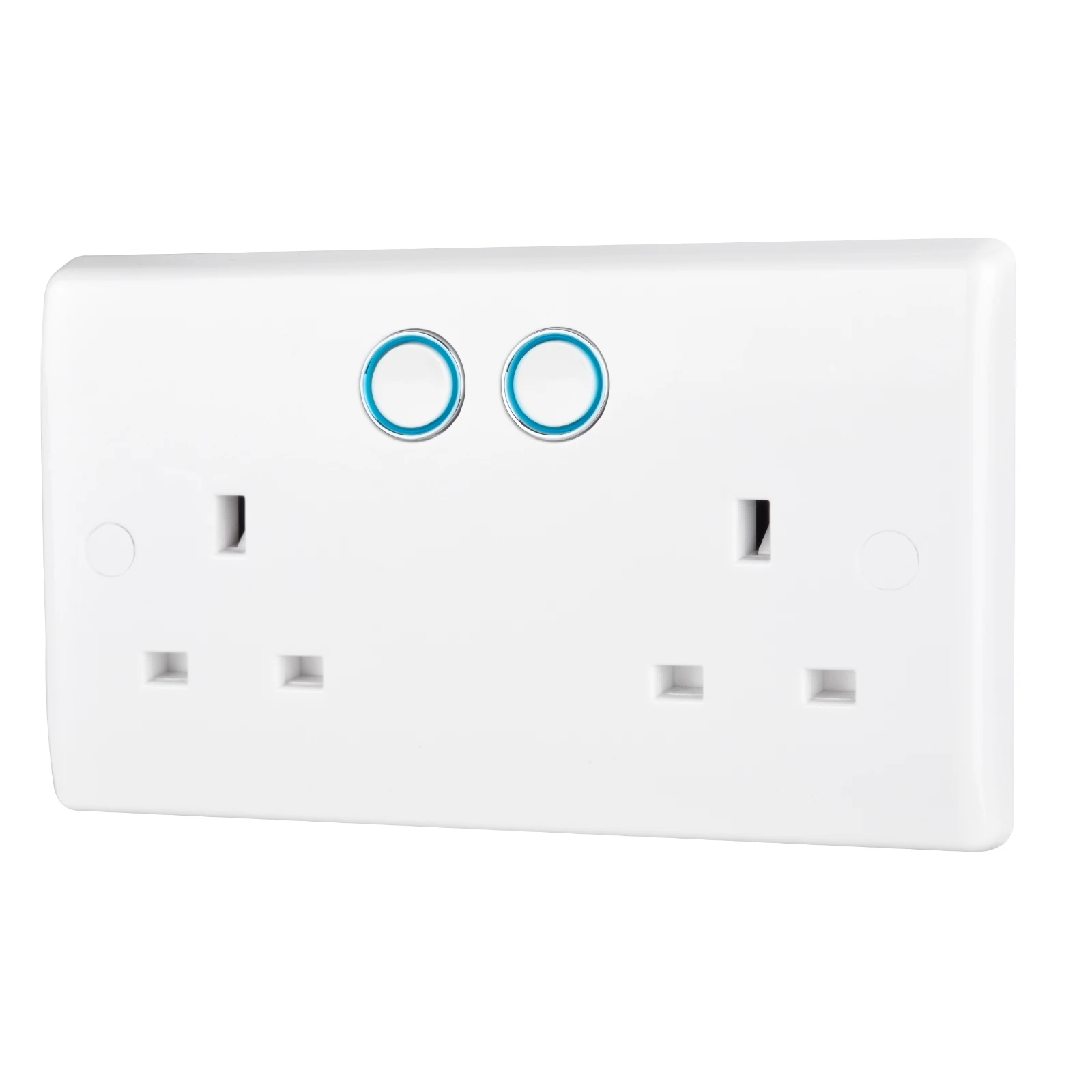 Smart WIFI Controlled 2G Socket – Slimline, 13A rated. · · · Control and schedule power in the home or outside via touch, voice commands or BG Home App · · No gateway hub unit, no expensive cloud costs, or subscriptions · · BG Home App availale to download from App Store or Google Play · · Set timer schedules, countdown function or random security options · · Compatible with Google Home, and Amazon Alexa for smart home integration · · Quick and easy set-up, with in-App support